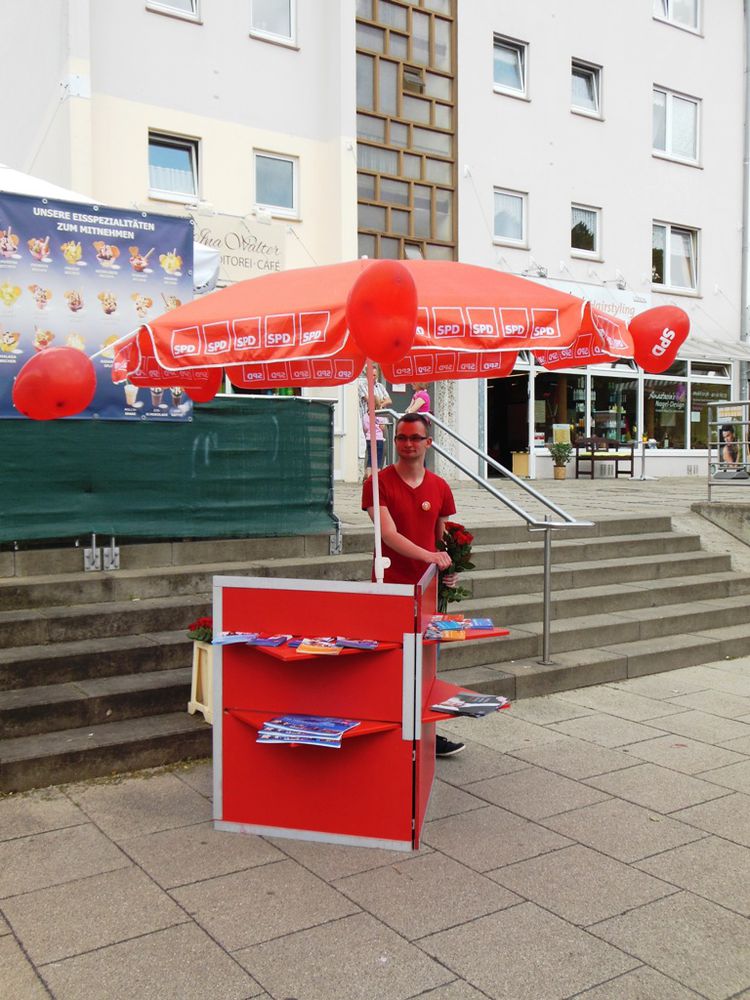 Auch bei REWE gab es rote Rosen und sehr viele gute Gespräche. In Aktion waren Barnabas und Tom.