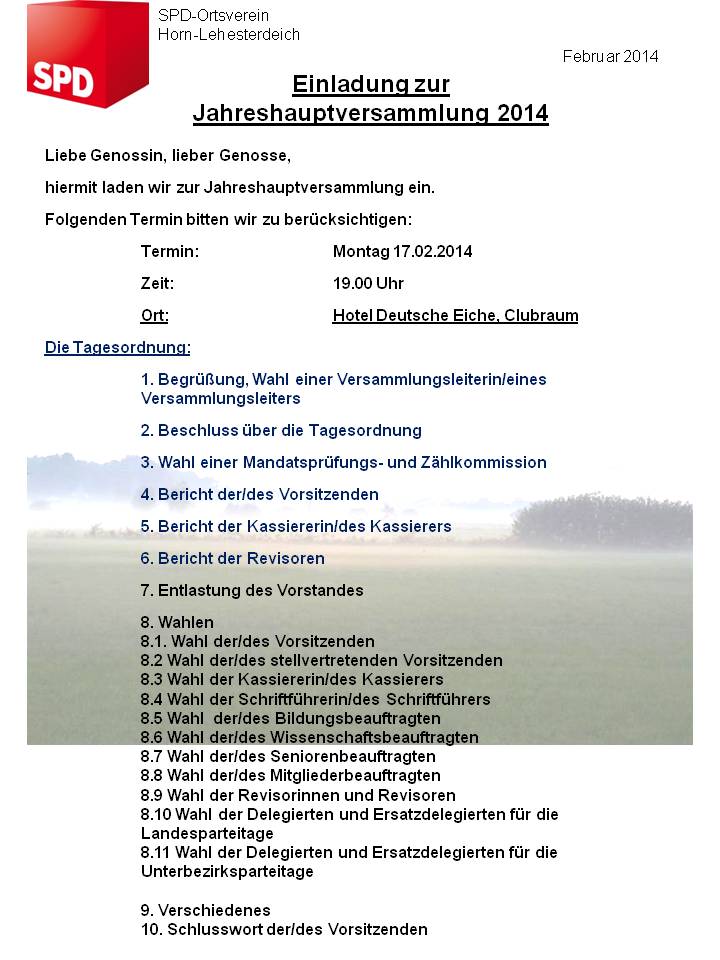 Einladung zur Jahreshauptversammlung 2014