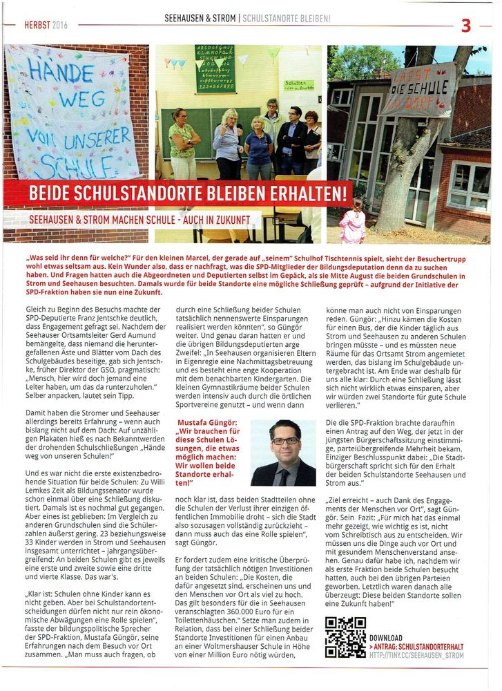In der neusten Ausgabe von "ROTHEUTE" gibt es auch einen Bericht über den Erhalt der beiden Schulstandorte in Seehausen und Strom. Unterstützt wurde dies auch aus Horn-Lehe.