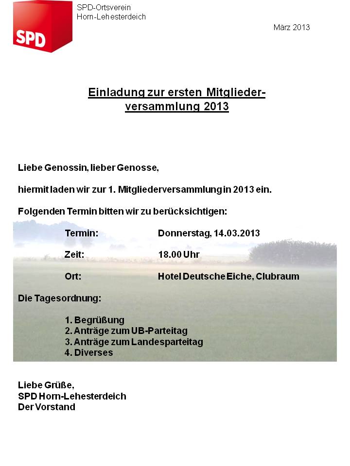 Einladung zur 1. regulären OV Sitzung 2013