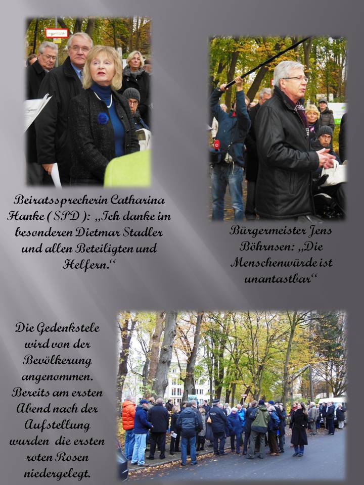 Am heutigen Samstag, 23. November 2013, wurde die Gedenkstele im Gedenken an die Opfer des NS-Regimes an der Senioren-Residenz Haus Sonnenbogen im Luisental eingeweiht. Zu dieser öffentlichen Feierlichkeit war auch unser Bürgermeister Jens Böhrnsen eingeladen.