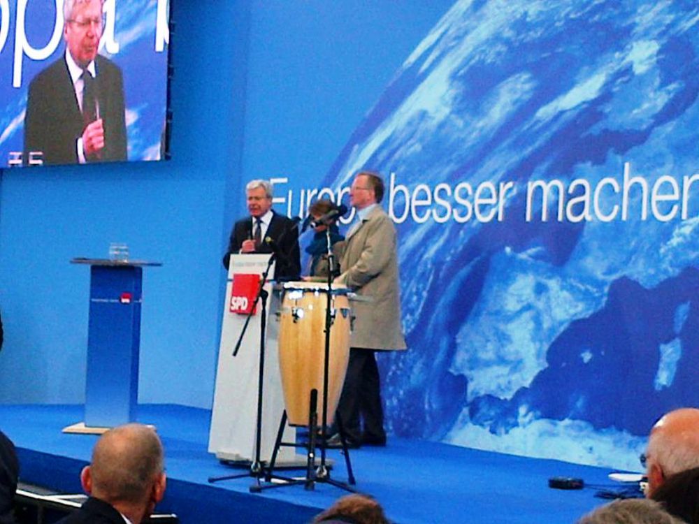 Bis es es aber soweit war, dass Martin Schulz die Rednerbühne betratt, gab es noch eine Reihe andere Redner, die u.a. die positiven Einflüsse Europas auf Bremen in den Vordergrund stellten. So verwies Bürgermeister Jens Böhrnsen auf die Tradition der Hansestadt als Handelstadt. Viele Exporte gehen von Bremen aus auch in die europäischen Länder und davon lebt Bremen. Außerordentlich positiv sind auch die Mittel aus dem EU-Sozialfonds, die in Bremen dafür gesorgt haben, schwierige Phasen mit wirtschaftlichen Umbrüchen zu überwinden, so Dieter Reinken, SPD-Parteichef.