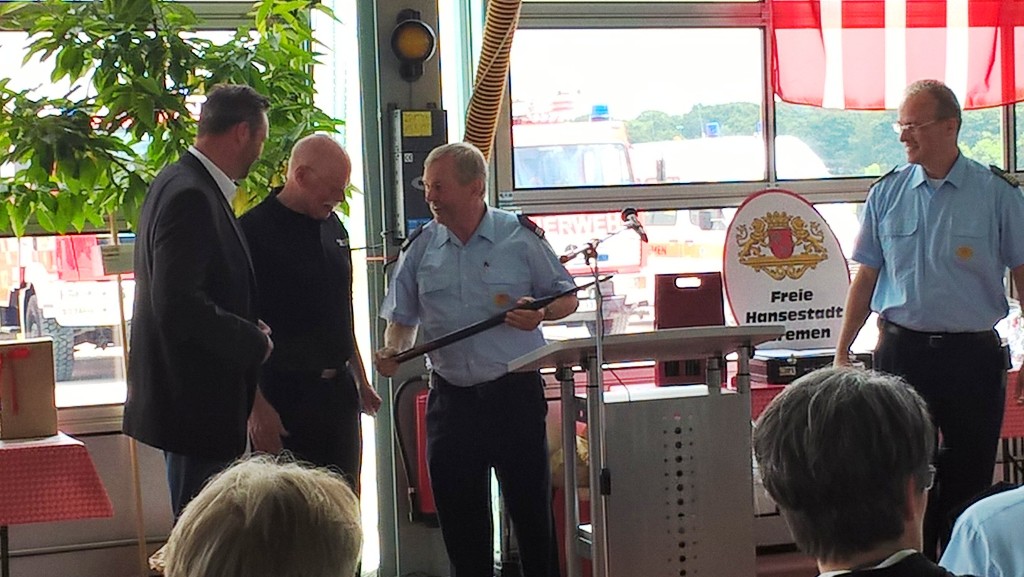 Senator für Inneres Ulrich Mäurer übergibt den Schlüssel an Heiko Lürßen.