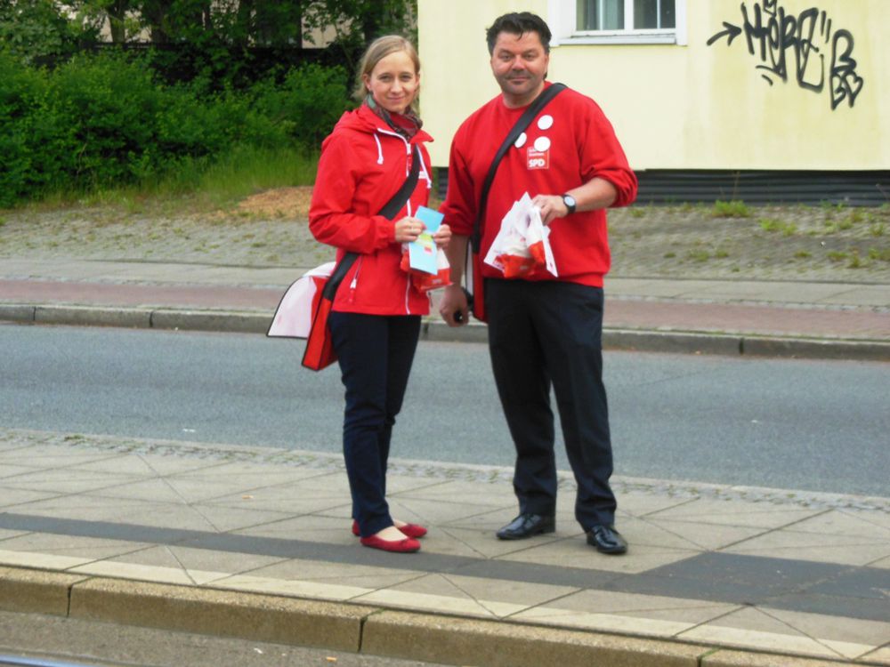 Unterwegs im Namen der SPD Lehesterdeich. Frische Brötchen und eine süßer Snack für die Bürgerinnen und Bürger von Horn-Lehe. Catharina, Michaela, Florian und Tom beim Strassenwahlkampf pur.