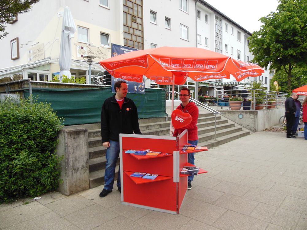 Wahlstand in der Wilhelm-Röntgen-Strasse mit Florian, Barnabás und Tom.