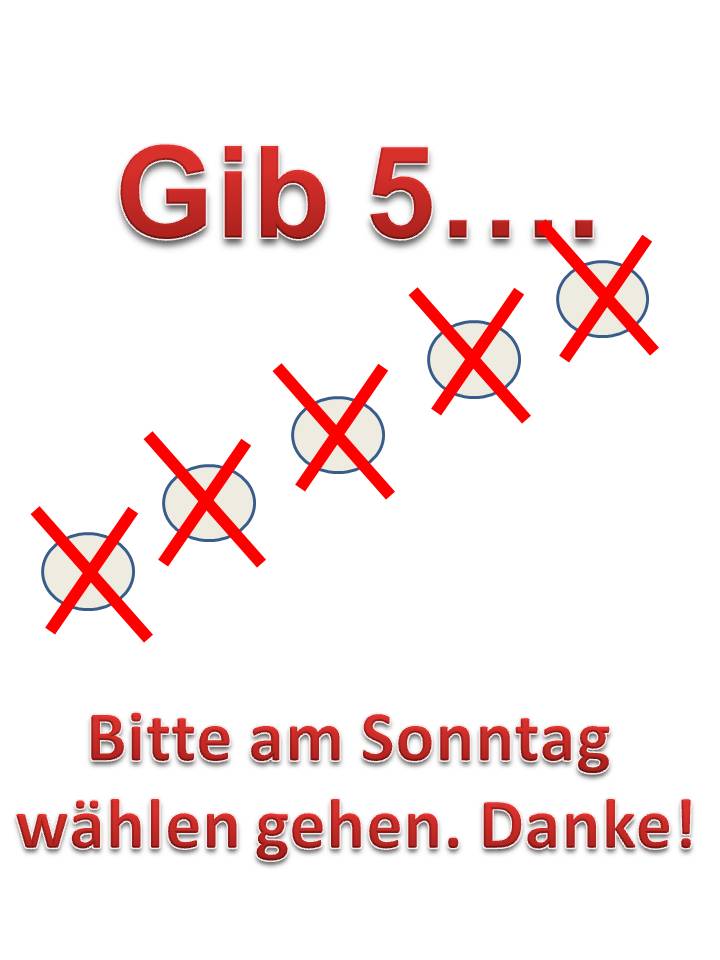Also, gehen Sie zur Wahl. Wir danken Ihnen.