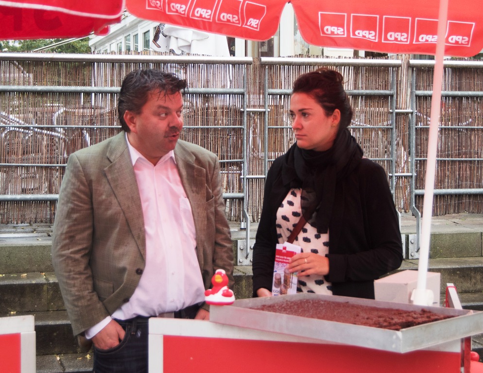 Trotz anfänglich heftigen Regen, haben Volker und Tom unseren Stand am Samstag aufgebaut. Neben den Flyern zu den Erfolgen der SPD, gab es auch frisch gebackene Brownies.