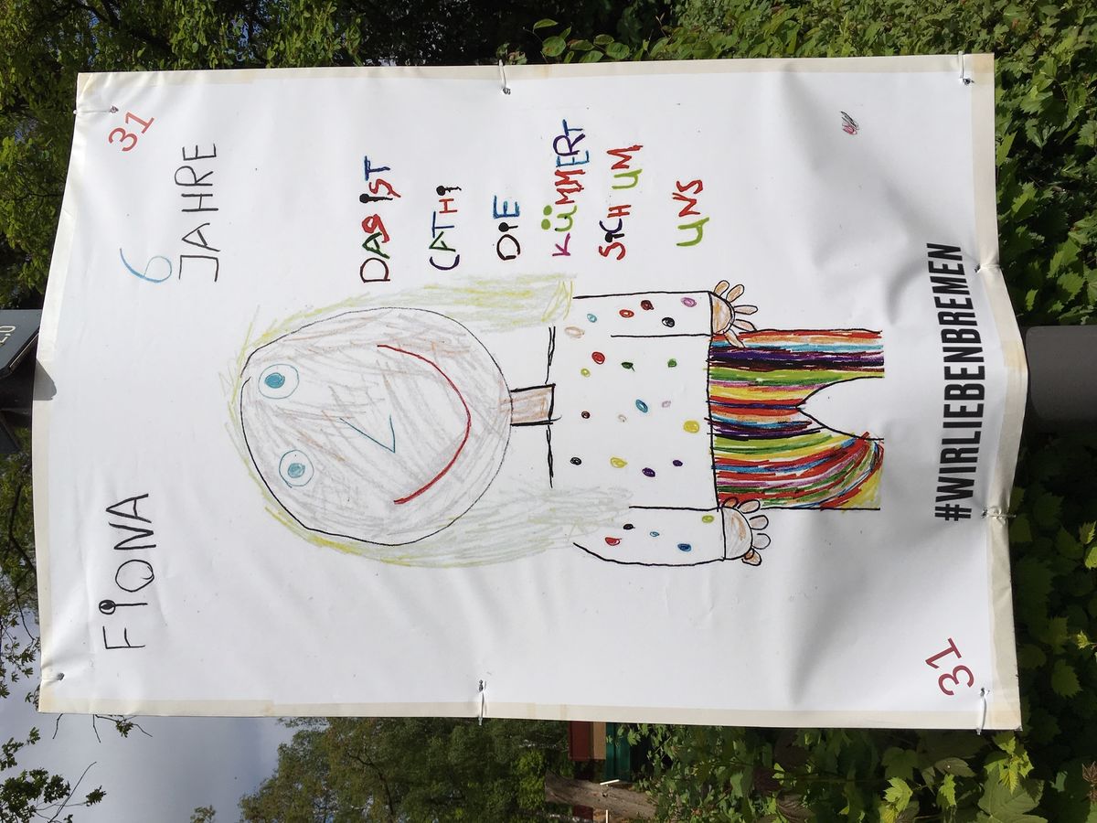 Kinder malen gern mit viel Farbe - also möglichst schön bunt. Bunte Bilder zeigen Offenheit für Veränderung und Neugierde auf Neues. Fiona (6 Jahre) hat unsere Bürgerschaftskandidatin Catharina Hanke (Liste 01 / Platz 31) ganz bunt gemalt und bringt damit auf kindereigene Art, mit dem Hinweis „die kümmert sich um uns“, zum Ausdruck, dass Catharina auch für die Kleinen immer da ist.