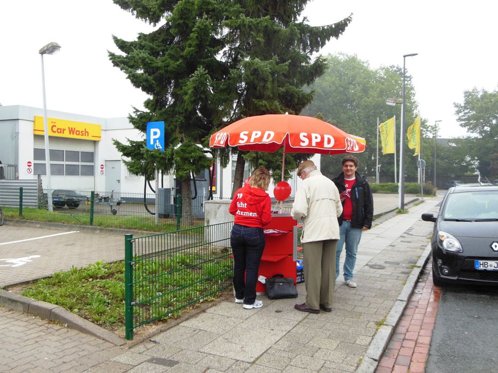 Viele haben bereits die Stimme per Briefwahl für die SPD abgegeben, aber natürlich kommt man an unseren Stand um den ein oder anderen "Schnack" zu halten. Die Stimmung ist gut.