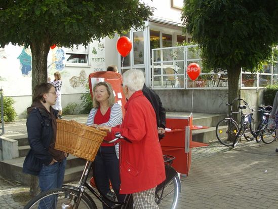 Im Vorgriff auf die Veranstaltung "SPD im Stadtteildialog - Thema Bildung" war am heutigen Samstag der "Rote Schuh" auf Bildungsreise. Am Standort vor REWE in der Wilhelm-Röntgen-Strasse wurde über Probleme im Bereich Schule und Bildung diskutiert.