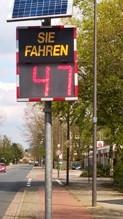 Verkehrsmesstafel in der Kopernikusstrasse - und gleich einen erwischt
