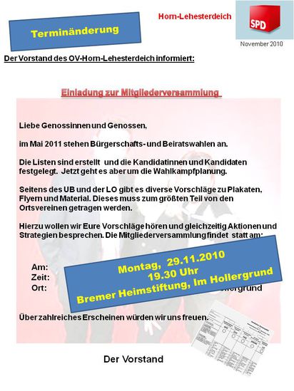 leider führt der Montag, 22.11.2010 zur verschiedenen Terminüberschneidungen. Aus diesem Grund haben wir uns entschlossen, den Termin auf