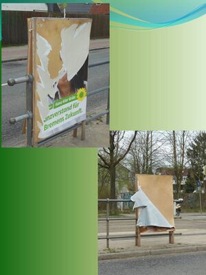 ^^^Es gibt Wahlwerbung, über die können sich auch Politiker aufregen. Ralph Saxe, Landesvorsitzender der Grünen, gehört dazu. Ihm missfallen insbesondere Plakate, die durch Wind und Wetter oder von Unbekannten zerstört, zerrissen, beschmiert sind – und so das Stadtbild beeinträchtigen. Darum soll laut Saxe die Wahlwerbung in Bremen und Bremerhaven reformiert werden. Der Landesvorstand der Grünen