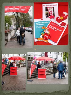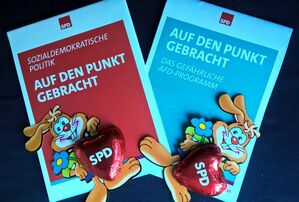 Am Samstag, den 15.04.2017 sind wir wieder im Stadtteil. Mit der Osteraktion "Auf den Punkt gebracht" wollen wir den Mitbürgerinnen und Mitbürgern das Programm der SPD näherbringen und auf die Gefahren des Programms der AfD hinzuweisen.