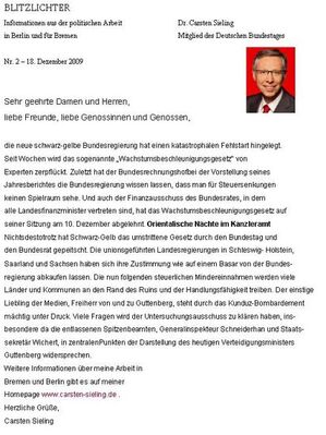 Carsten wird uns über seine Arbeit in Berlin und für Bremen in "Blitzlichter" informieren. Wir werden diese Infos über die Internetseite gern allen zur Verfügung stellen. Hier ist das Vorwort....