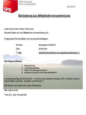 Hier findet Ihr die Einladung zur Mitgliederversammlung am Montag, den 01.06.2015 um 20.00 Uhr in der Horner Eiche am Autobahnzubringer.