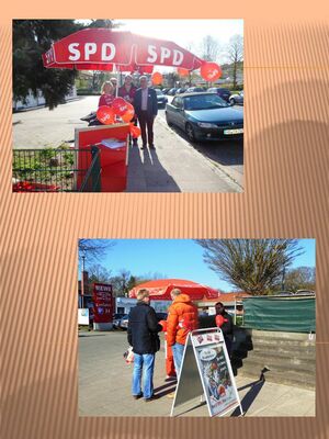 Samstag, 02.05.2015 - die Sonne lacht morgens mit der SPD Horn-Lehesterdeich um die Wette. Bei strahlendem Sonnenschein am frühen Morgen wurde die beiden Stände in der Edisonstrasse und der Wilhelm-Röntgen-Strasse aufgebaut.