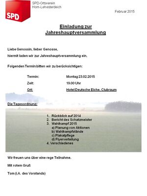 Der Arbeitsparteitag am 07.02.2015 fällt aus.
