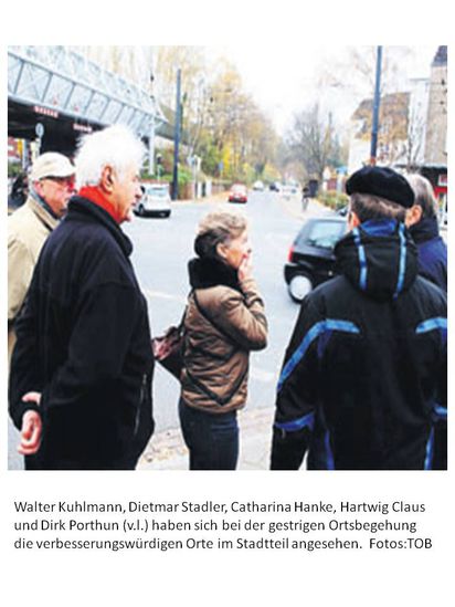 kürzesten Wege zum Hindernislauf, denn Stolpersteine und schmale Bür-gersteige erschweren ihnen den ohnehin schweren Gang durch den Stadtteil. Gestern haben sich die Ortspolitiker ein Bild von den gefährlichsten Stellen gemacht.
