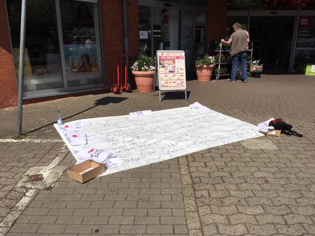 Interessant, wie viel Aufmerksamkeit die Infos am Boden erregen. Wir haben viele interessante Gespräche geführt. Dazu gab es Jute-Beutel "WIR LIEBEN BREMEN" direkt für den nächsten Einkauf.